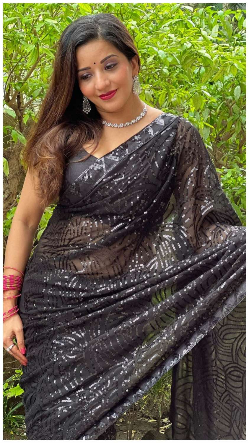 Monalisa ने ब्लैक सिजलिंग साड़ी में लगाया हॉटनेस का तड़का, तस्वीरें देख फैंस हुए कायल