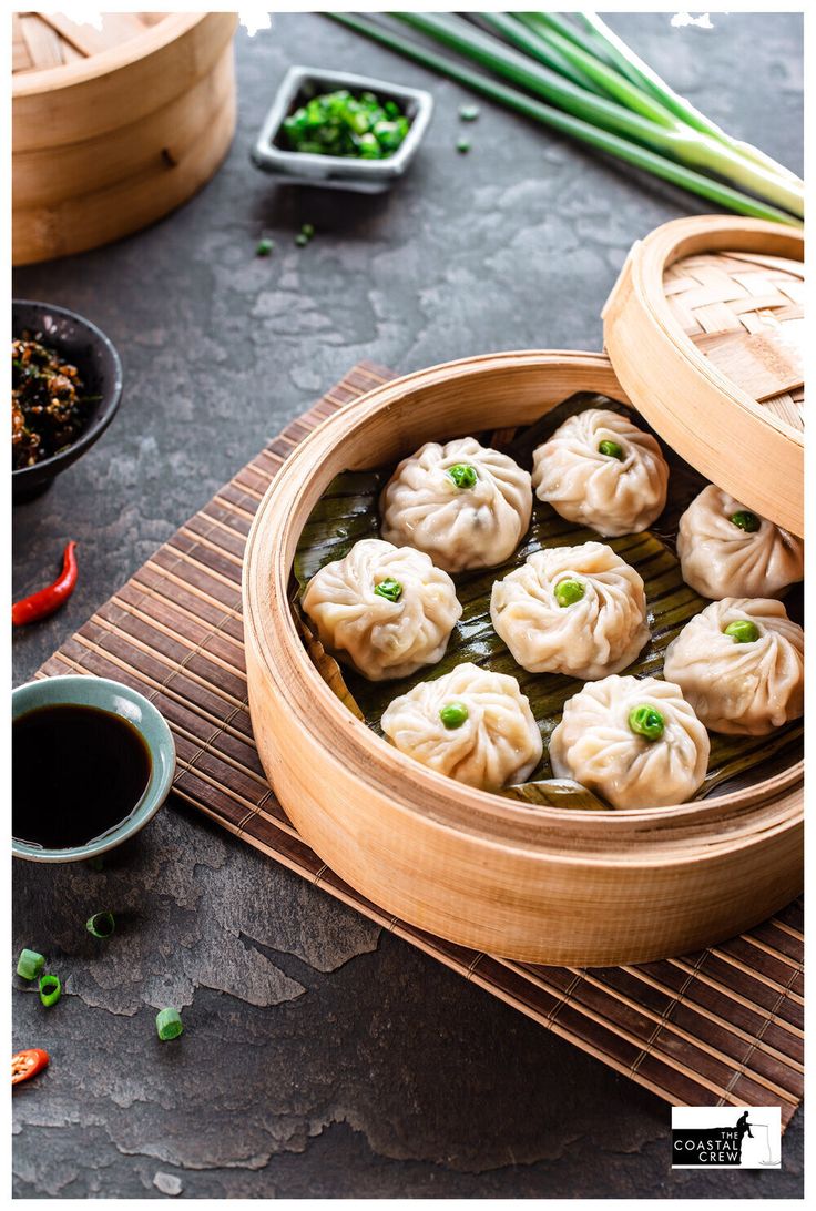 सब्जियों, चिकन और मांस के साथ उबले हुए मोमोज़ को लाल शेज़वान चटनी के साथ परोसा जाता है।
